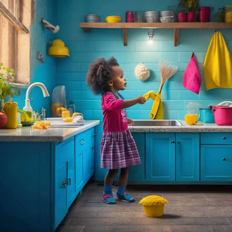 By giving your kids ownership of kitchen cleaning, you're teaching them essential life skills like responsibility and independence. It's not just about wiping down tables and sweeping floors - it's about empowering them to take charge and develop a sense of confidence and self-worth. Digital checklists and guides make it easy to assign tasks and track progress, while incorporating games and challenges can make cleaning fun. By giving your kids personal autonomy over their tasks, you're showing trust in their abilities and motivating them to take their tasks seriously. Take the next step in building their confidence and responsibility - explore how to make kitchen cleaning a positive experience for your kids.